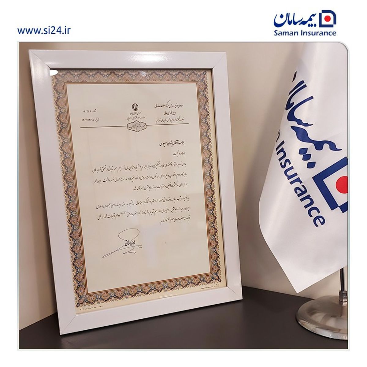 عملکرد مدیر مبارزه با پولشویی و تامین مالی تروریسم شرکت بیمه سامان از سوی هادی خانی، رئیس و دبیر شورای عالی مقابله و پیشگیری و مقابله با جرائم پولشویی و تامین مالی تروریسم مورد تقدیر قرار گرفت.